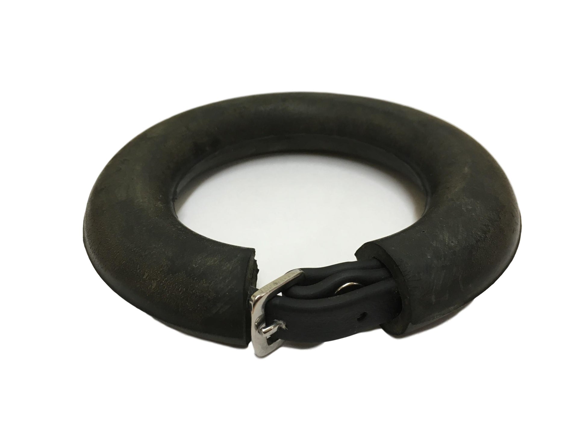A tubular rubber ring with leather strap fastening. Can be used for turnout or riding to prevent injury to the fetlocks by brushing or over reaching.