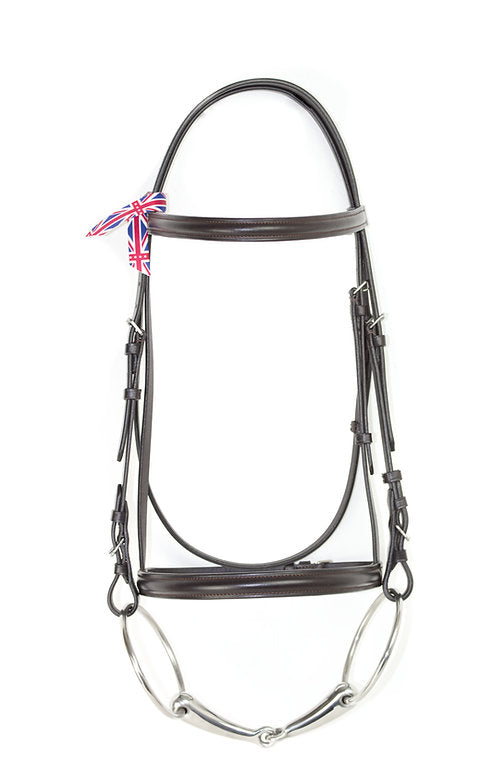 Flat size bridle: 1/2" F/S headpiece, 1/2" F/S browband, 1/2" cob buckled cheeks pieces, F/S raised noseband